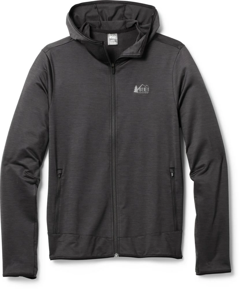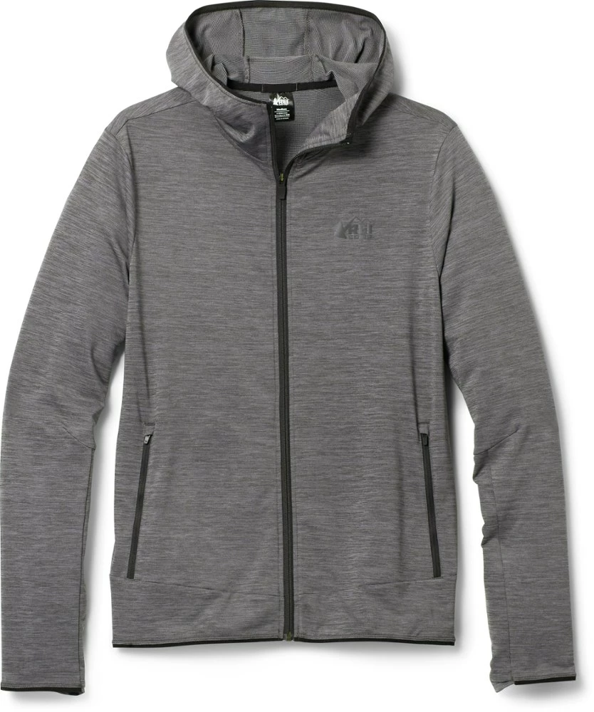 With 4-way stretch and wicking mesh fleece inside, the mid-weight men’s REI Co-op Active Pursuits full-zip hoodie is warm but breathable—ideal for warm-up and cooldown time.