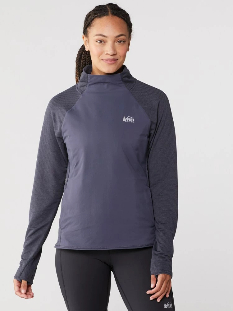 Breathable warmth and 4-way stretch make the women’s REI Co-op Active Pursuits insulated pullover a natural for cool-morning running—and whatever else comes next in your day.