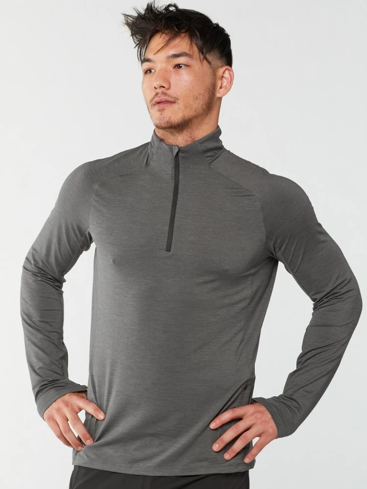 - Quarter-zip neck opening lets you adjust venting as your workout warms up