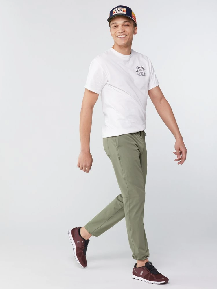 The morning walk was so good you just kept going, so you’re in a new neighborhood and it’s lunchtime. No problem! The men’s REI Co-op Beyonder pants take extra miles and cafe dress codes in stride.