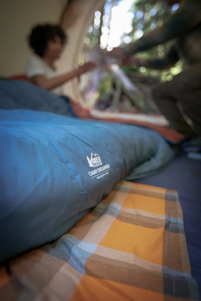 It’s as close to your bed at home as you can get—but designed for camping. The REI Co-op Camp Dreamer Double Sleep System includes a quilt, top sheet, fitted sheet and removable hood that all connect.