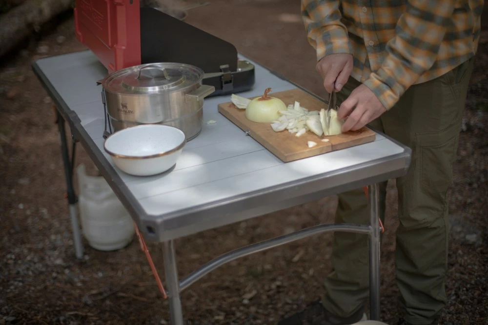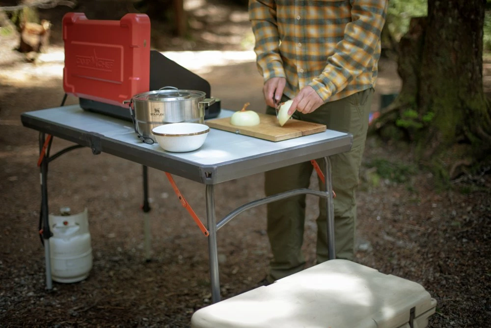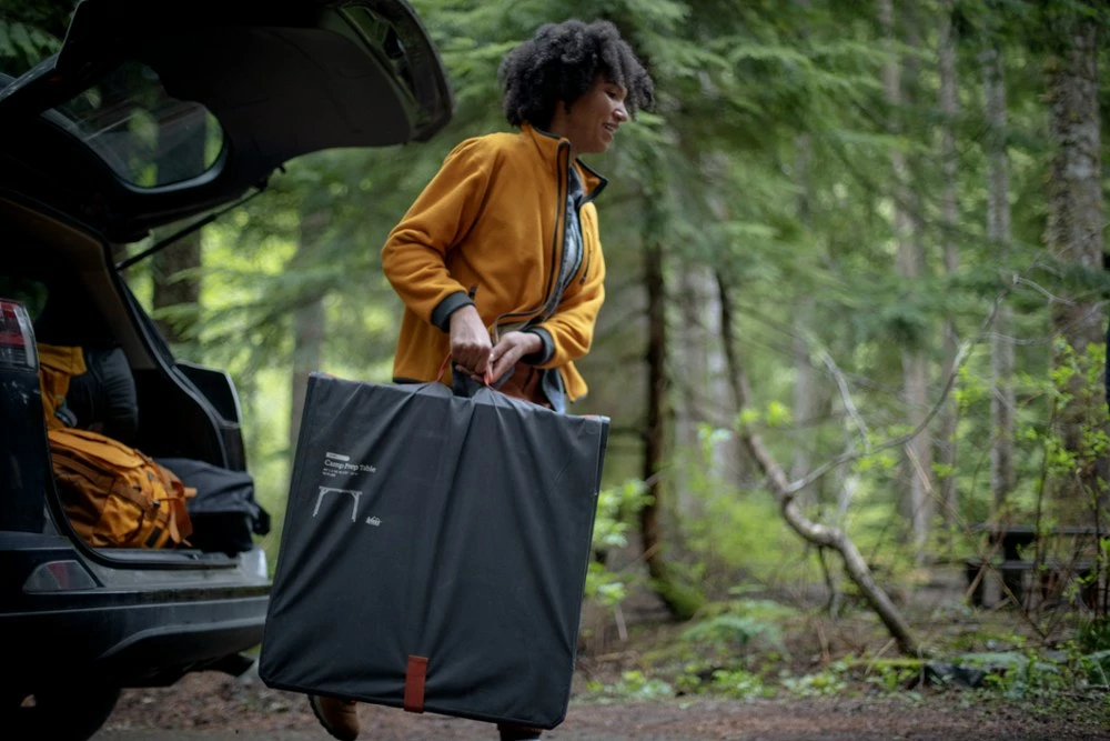 Never enough prep space? Carry along the REI Co-op Camp Prep Table to extend your tailgate or picnic table. The independently adjustable legs handle a wide range of heights and uneven terrain.