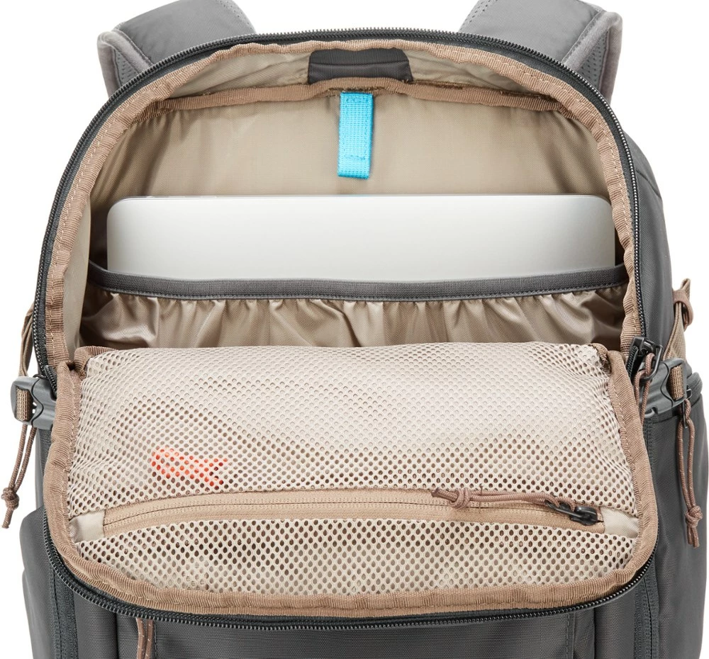 - Main compartment includes sleeve for laptop and can be used for hydration reservoir (reservoir not included)