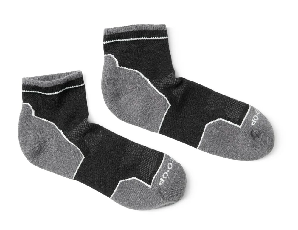 Make a dash in the REI Co-op COOLMAX EcoMade Lightweight Flash Quarter socks. Made from recycled water bottles, they offer minimal-but-long-wearing cushioning and a sport-style fit that stays put.