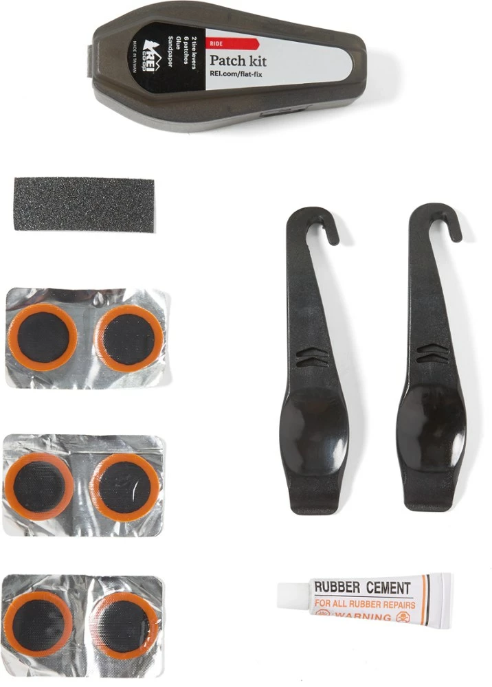 - Fix flats fast with the patch kit, which includes patches, glue, sandpaper and 2 tire levers
