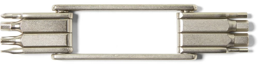 - Multi-tool has a Torx T25 for disc brake adjustments; 2, 3, 4, 5 and 6 mm hex wrenches; 1 Phillips screwdriver and 1 flathead screwdriver