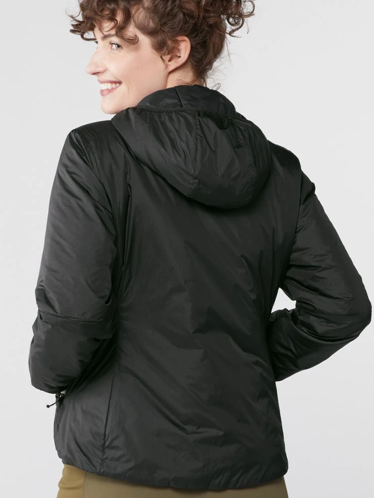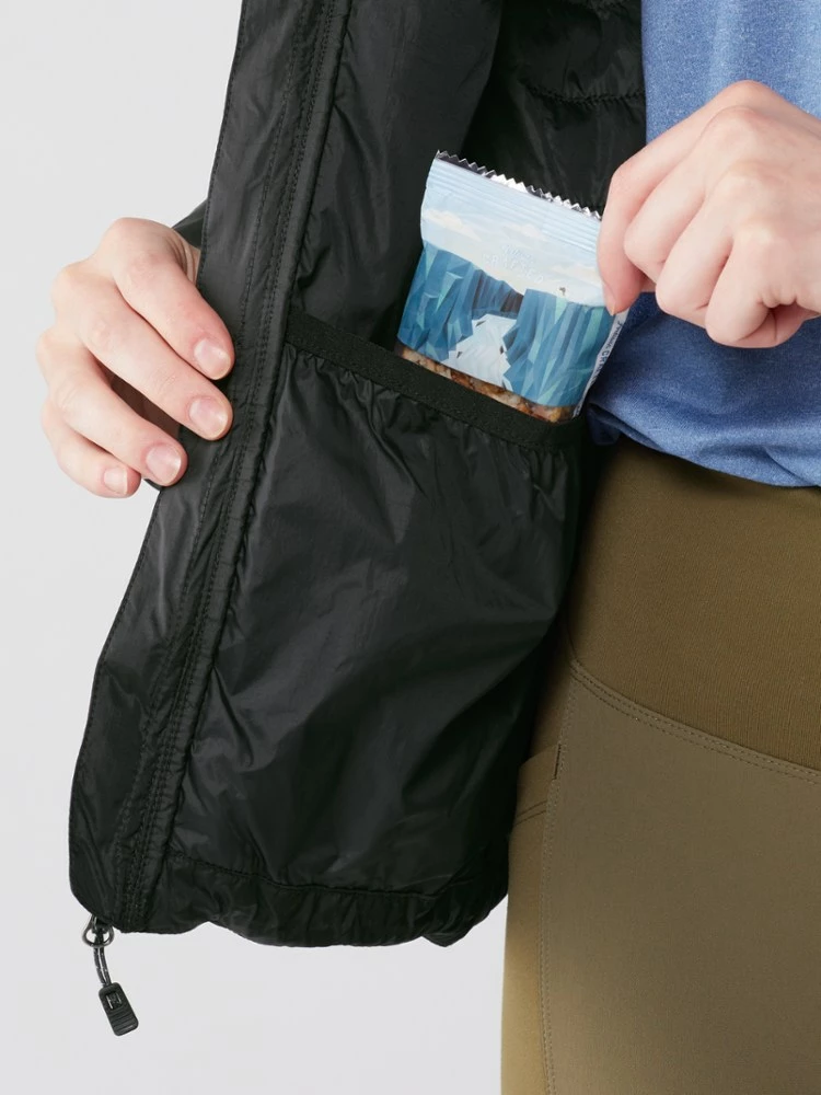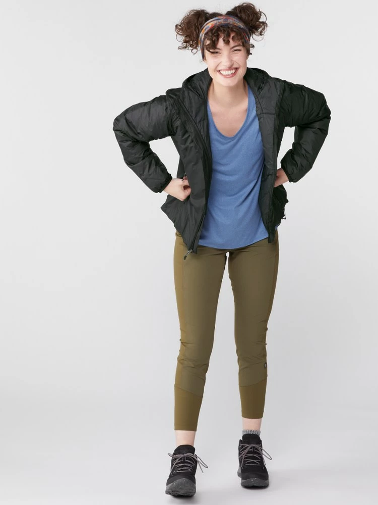 With ShadowBaffle™ construction that’s warmer than standard quilting, the women’s REI Co-op Flash insulated hoodie is amazingly warm for its weight—and made with 70% recycled insulation.