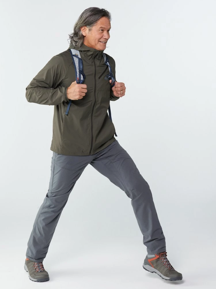 Ultralight and packable, the men’s REI Co-op Flash jacket may be your “just-in-case,” but it’s no afterthought—it’s all the weather protection you need for a day on the trail, plus some sweet extras.