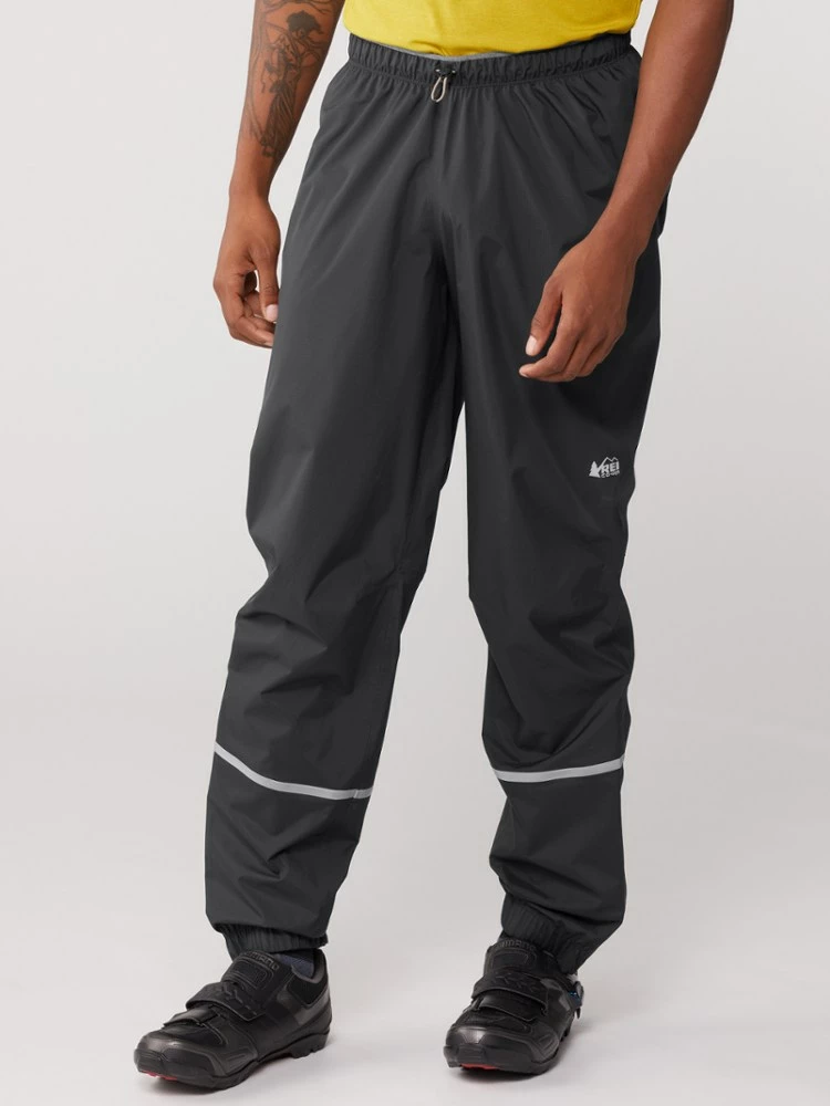 Pull on the waterproof, windproof, breathable REI Co-op Junction men’s cycling rain pants and ride through even superbad weather in dry comfort.