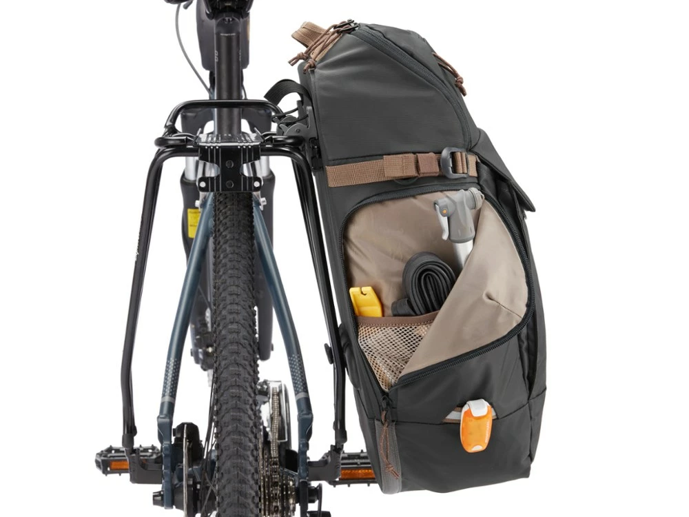 - Exterior pockets for tools, a U-lock, quick-deploy rain cover and other necessities