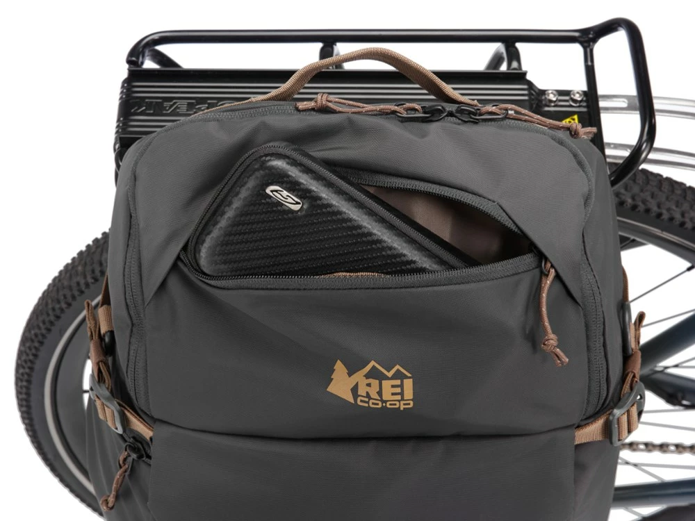 Road warriors, throw this tough pack on your rear rack and head for the office with your clothes, lock and laptop. The REI Co-op Junction single pannier has dedicated pockets for all of it.