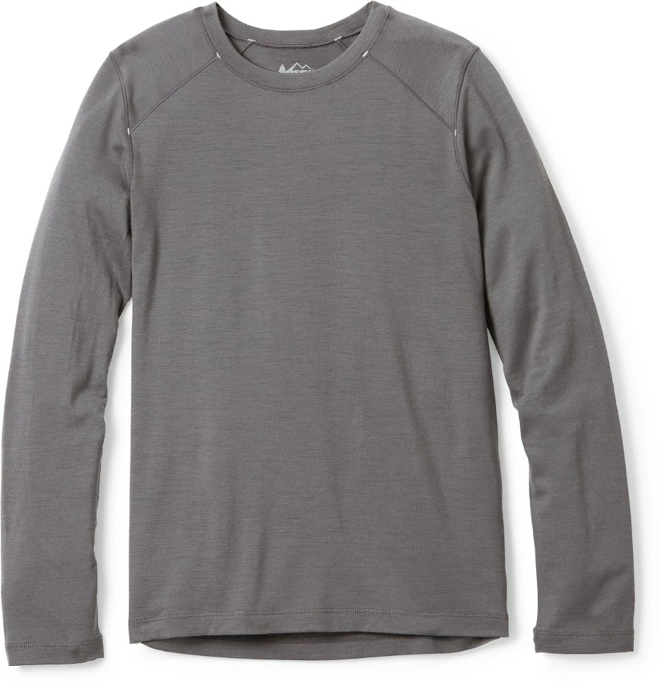 Oh so soft and not itchy, the kids’ REI Co-op merino midweight base layer top is an ideal first layer for cold weather. It naturally regulates temp and is certified to the Responsible Wool Standard.