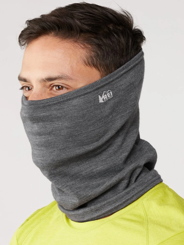 Protect your neck year-round in the REI Co-op Merino Wool Neck Gaiter, which features an extended length and soft, durable and lightweight merino blend.