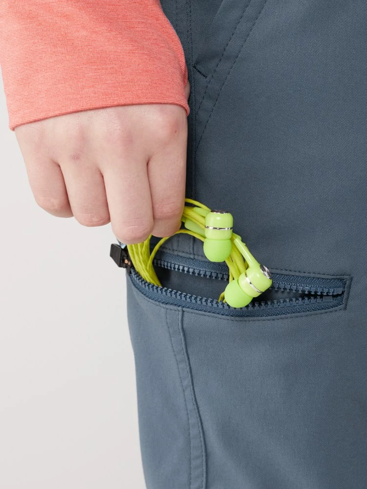 - Hand pockets, back pockets and zippered thigh pocket let them secure small valuables