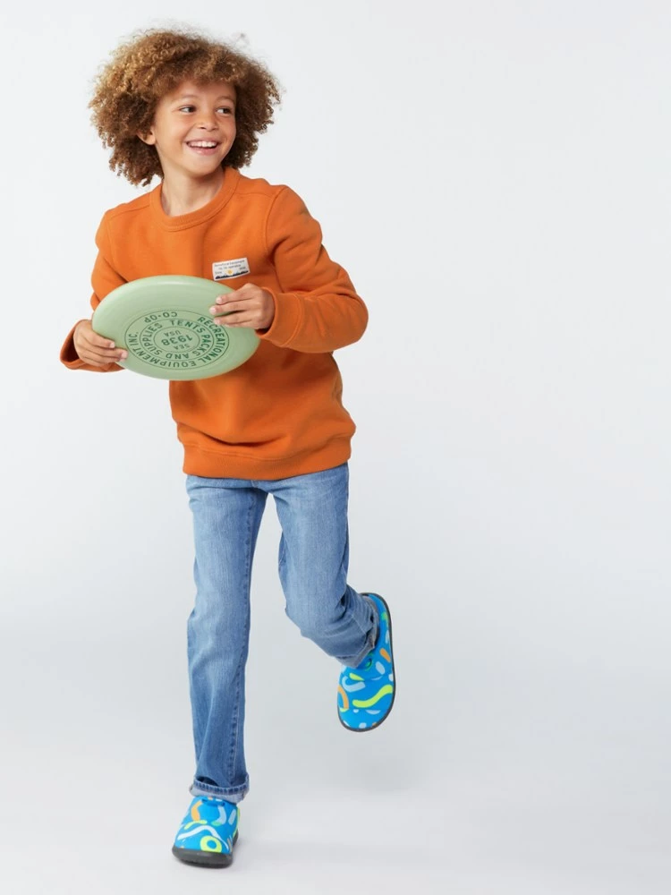 The kids’ REI Co-op Patch Crew Sweatshirt is a warm, breathable layer to keep them comfy all day whether they’re out in the cold or hanging out indoors.