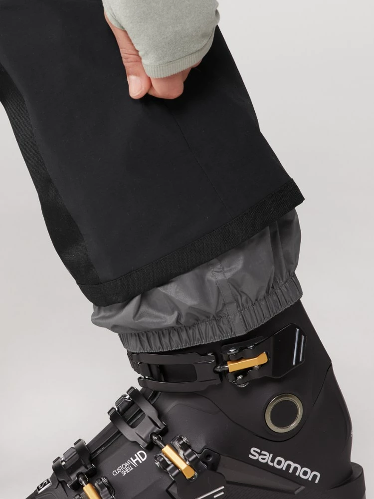 - Boot gaiters with grippy elastic seal out snow; tough scuffguards and reinforced hems provide durable protection in a placement that works for both skiers and snowboarders