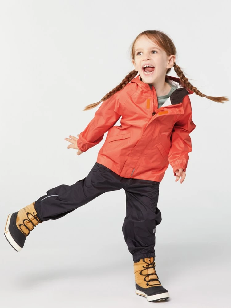 Little ones need protection from the elements, too! The toddlers’ REI Co-op Rainwall rain jacket offers windproof, waterproof and breathable wet-weather defense for tots who love to be outside.