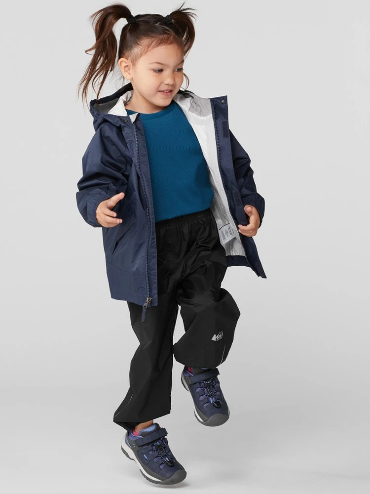 (Really) short people with (really) short legs like to keep dry too—dress them in the toddlers’ REI Co-op Rainwall rain pants so they can be fully protected from the wind and rain.