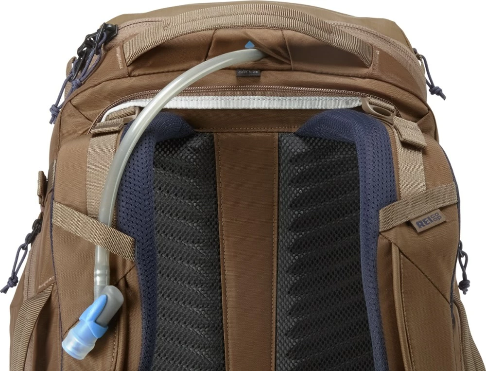 - Access port on the left side of the pack accommodates a hydration reservoir tube (reservoir not included)