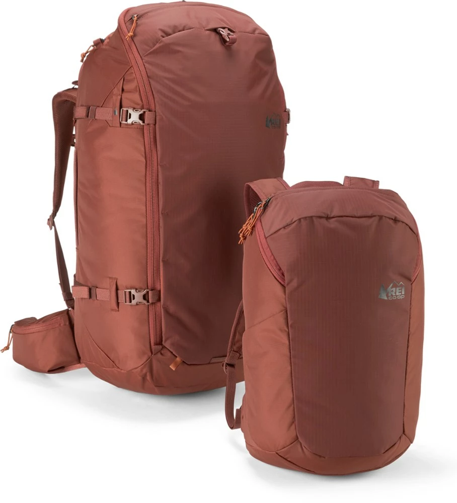 The women’s REI Co-op Recycled Ruckpack 60+ pack is the quintessential mothership/satellite travel set—a 60-liter pack to get you there plus a 20-liter pack for your day-tripping explorations.