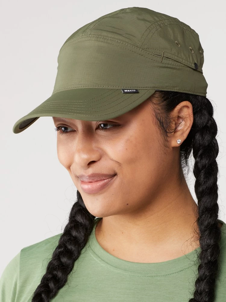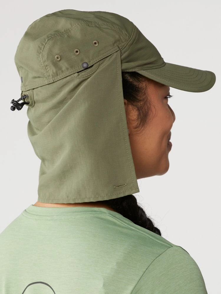 Hikers, campers, festival goers—let the sun shine down. The REI Co-op Sahara cap with cape lets you drop a curtain over your ears and neck for breathable UPF 50+ sun protection that won’t sweat off.