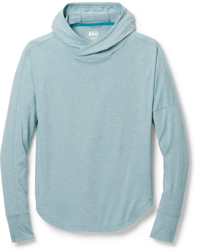 Move like you’re in a T-shirt but with full protection from the sun. The women’s REI Co-op Sahara Shade Hoodie is built for the trail with a tech-tee-like knit that wicks moisture and provides shade.