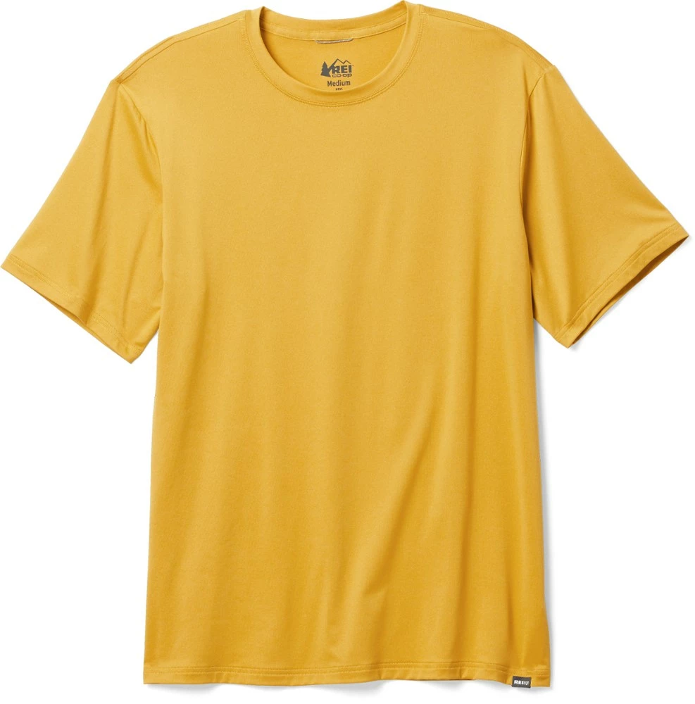 Quick drying material that makes it ideal for handwashing on multiday trips, the men’s REI Co-op Sahara T-shirt wicks sweat, breathes and shades you with solid UPF 30 sun protection.
