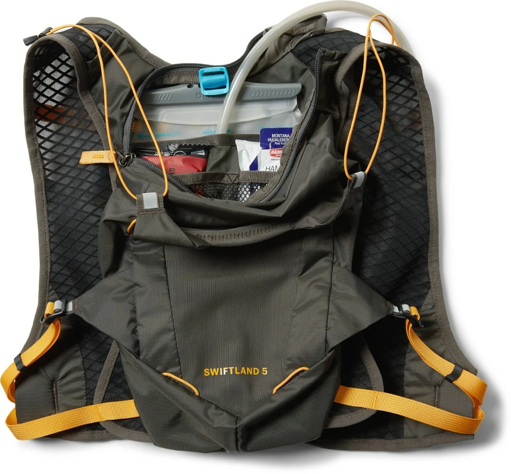 Tested for fit and performance on miles of trail runs, the men’s REI Co-op Swiftland 5 hydration pack has the compression, adjustability and storage to keep you comfortable all day out there.