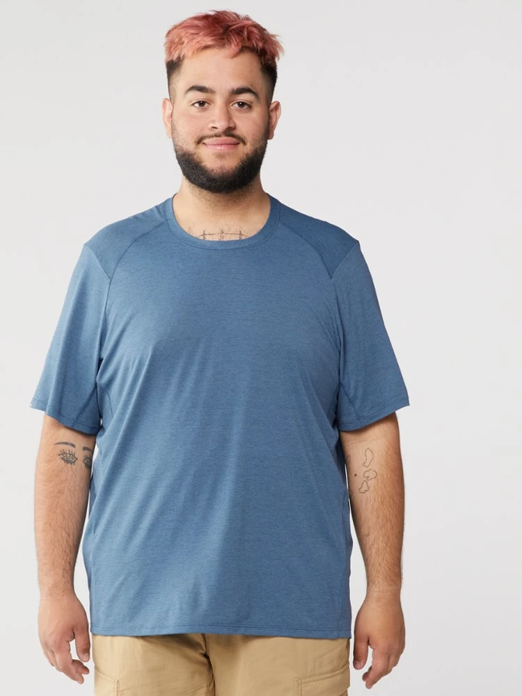 If you like running long trails on warm days, you’ll love the men’s REI Co-op Swiftland T-shirt—it’s made of microventilated SwiftTex™, a fabric so airy and cool it’s barely heavier than the breeze.
