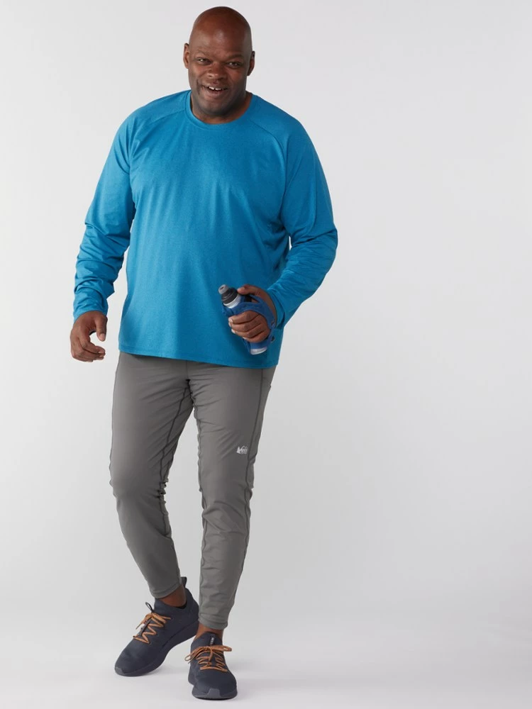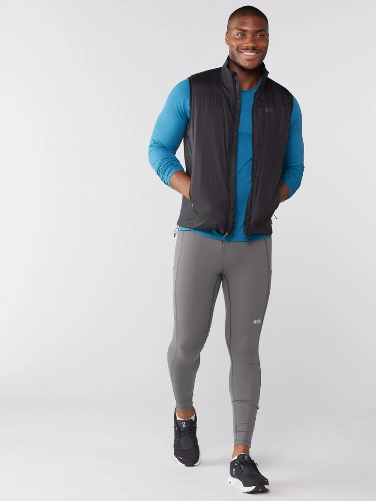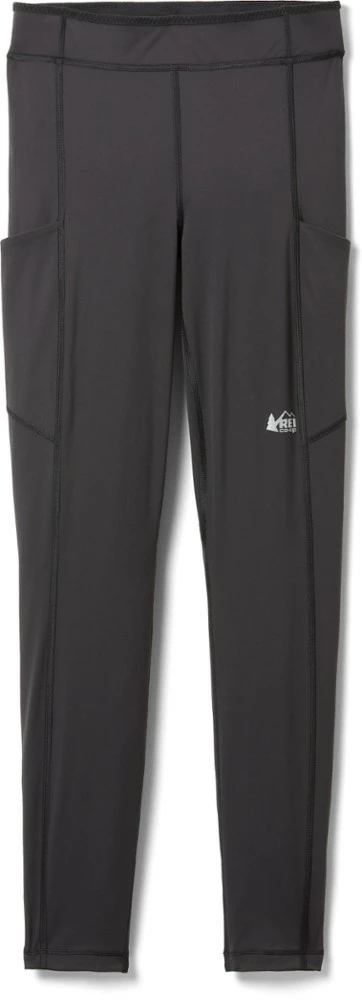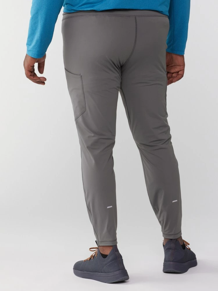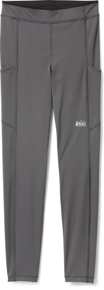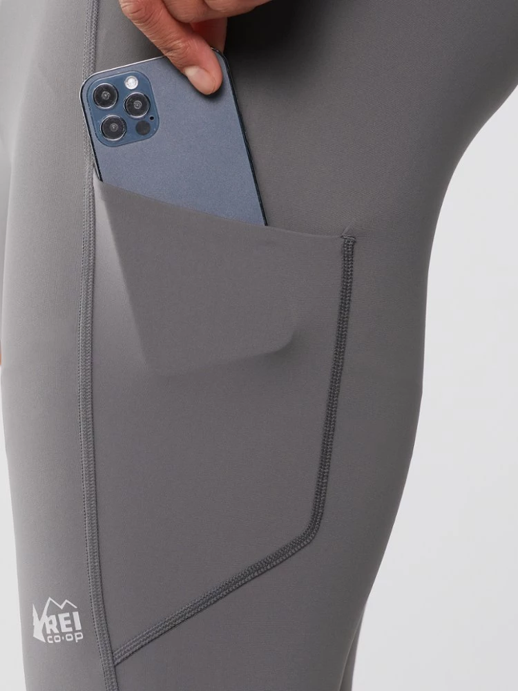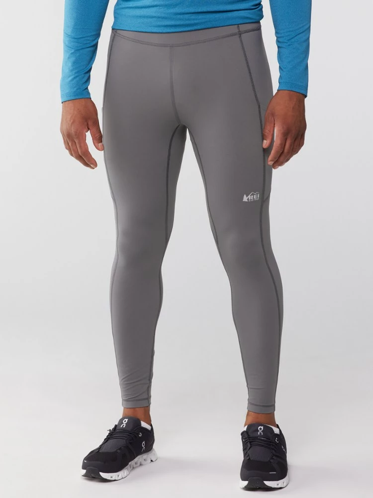 Power up, run far. Strong and stretchy, the men’s REI Co-op Swiftland running tights hold your phone and anti-bonk energy snacks in compression pockets that won’t hinder your stride