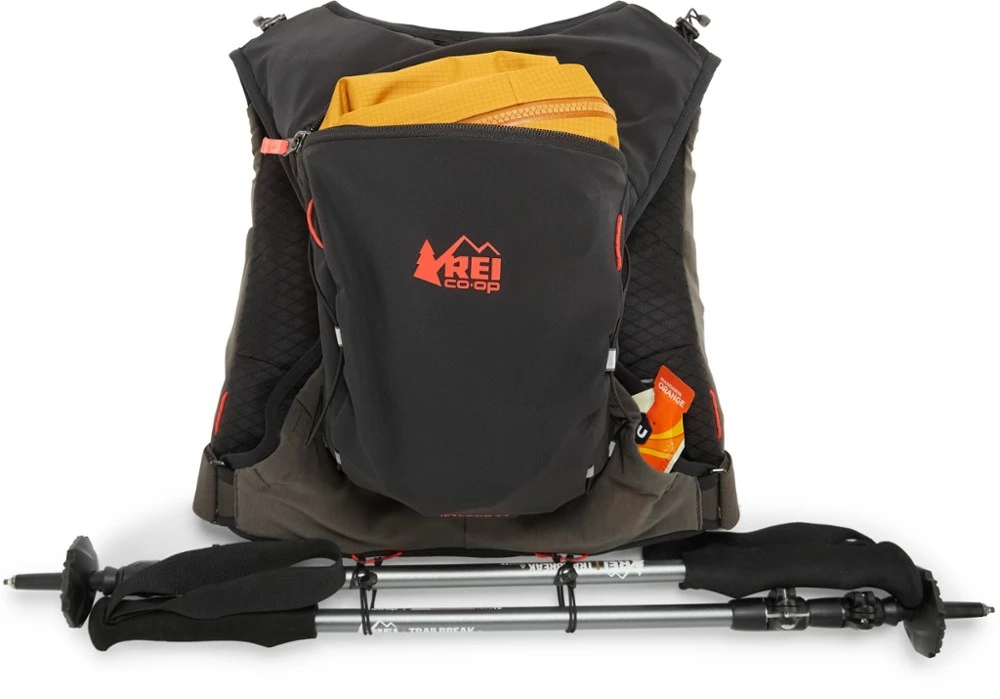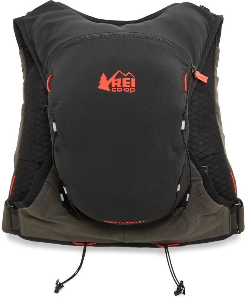 On zigzaggy trail runs, you need clear focus—and gear that hugs your core to keep you balanced. The women’s REI Co-op Swiftland TT hydration vest fits like a comfy shirt with a zillion pockets.
