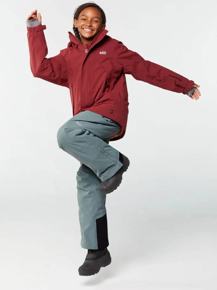 Learning to ski or building a fort, kids don’t mind falling in the snow. All you can do is help them stay out a little longer. The warm, waterproof REI Co-op Timber Mountain pants will do that.