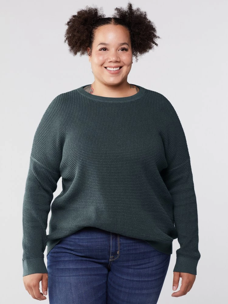 Made with organically grown cotton, the women’s REI Co-op Wallace Lake waffle sweater is warm enough for autumn walks and easily slides into a relaxed dinner out after.